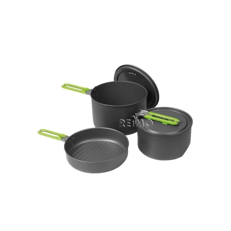 Les trois éléments de cuisson sont livrés avec une poignée isolée et rétractable. D’ailleurs, l’ensemble peut s’emboîter afin de ne pas prendre de place lors du rangement et du transport. Equipement pour camping-car de qualité, le revêtement est anti-adhésif.