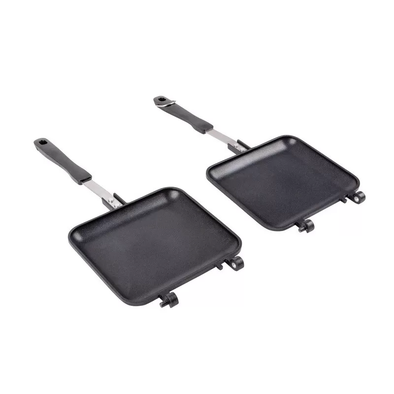 Ingénieux mais surtout compact, cet appareil est combiné de 2 mini-poêles carrées anti-adhésives qui peuvent se relier entre elles à l’aide de la poignée. Vous pourrez ainsi cuisiner de délicieux sandwichs chauds tout en vous servant de votre gazinière.