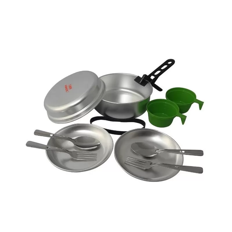 Pratique et indispensable, la popote est le matériel pour randonnée et camping incontournable. En effet, en peu de place vous avez l’essentiel pour cuisiner et manger ! Faitout, assiette, couvert tout est inclus dans cette popote scout avec son jeu de 12 pièces ! Ce modèle « Evaison » convient pour 2 personnes et fabriquée en aluminium, elle ne pèse que 598 g.