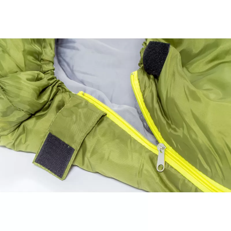 Parfait pour une utilisation saisonnière ou occasionnelles du sac de couchage, ce matériel de camping CAO OUTDOOR convient pour une utilisation jusqu’à 1°C. Prévu pour les adultes, le sac est doté d’une capuche afin d’éviter la perte de chaleur par la tête qui est, on le sait, une grande zone de perte de chaleur. Confortable grâce à sa forme rectangulaire et sa composition polyester 190T ne gardant pas l’humidité, l’intérieur est rembourré au coton creux 300 g/m2.