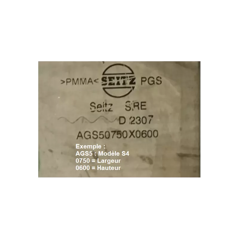 1. Sur votre baie, vous disposez d’une inscription à l’extérieur de votre vitrage. Elle vous permet de faire le bon choix de dimension en rapport à la désignation commerciale. Par exemple : AGS50750X600 = Store ou moustiquaire de 750 mm (VOIR PHOTO N°2)