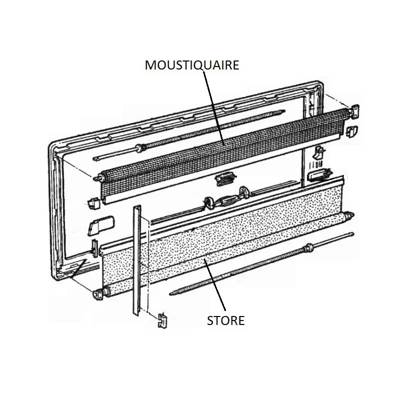 Accessoire et équipement : pièces détachées moustiquaire ou store pour baie projetable ou coulissante DOMETIC SEITZ S3 / S4 installée sur camping-car ou fourgon aménagé.