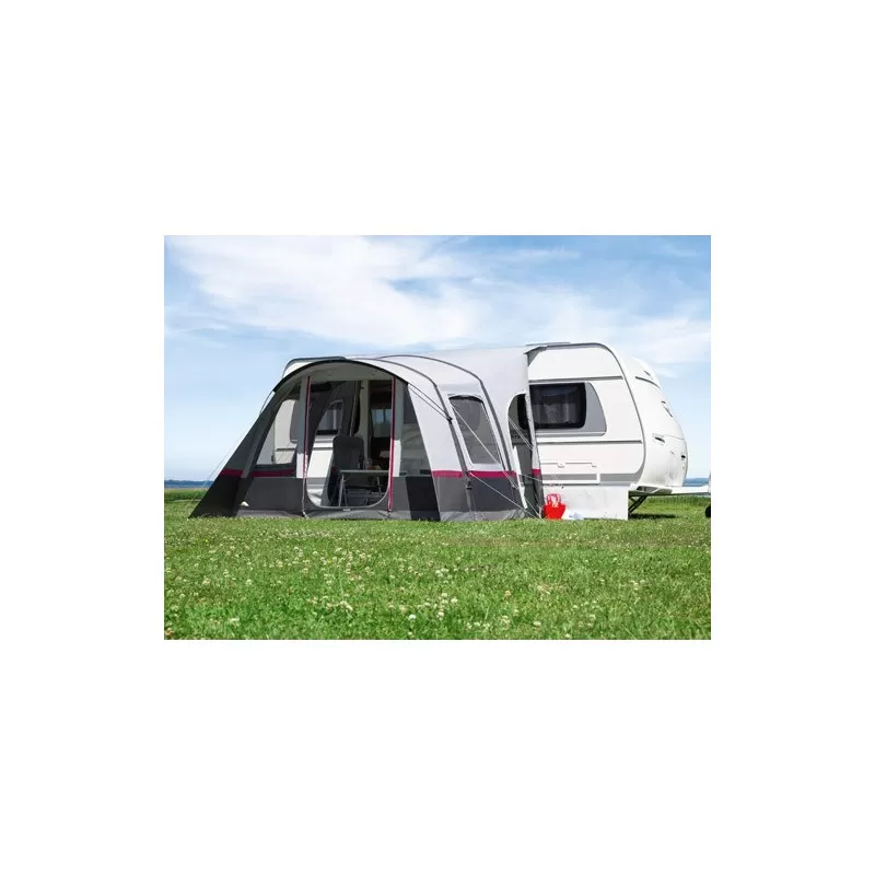 Auvent de caravane compact et gonflable de marque DWT équipé d’un jonc pour un montage rapide et facile sur votre caravane.