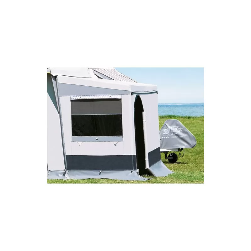 L’auvent Carat est proposé avec une profondeur de 240 cm mais il est aussi disponible en profondeur 280 cm. Particulièrement adapté pour les caravanes voyageant sur toute l’année, cet auvent DWT répondra à vos plus hautes exigences. Son toit ainsi que ses parois frontales et latérales sont en polyester et sont plastifiées des 2 côtés.