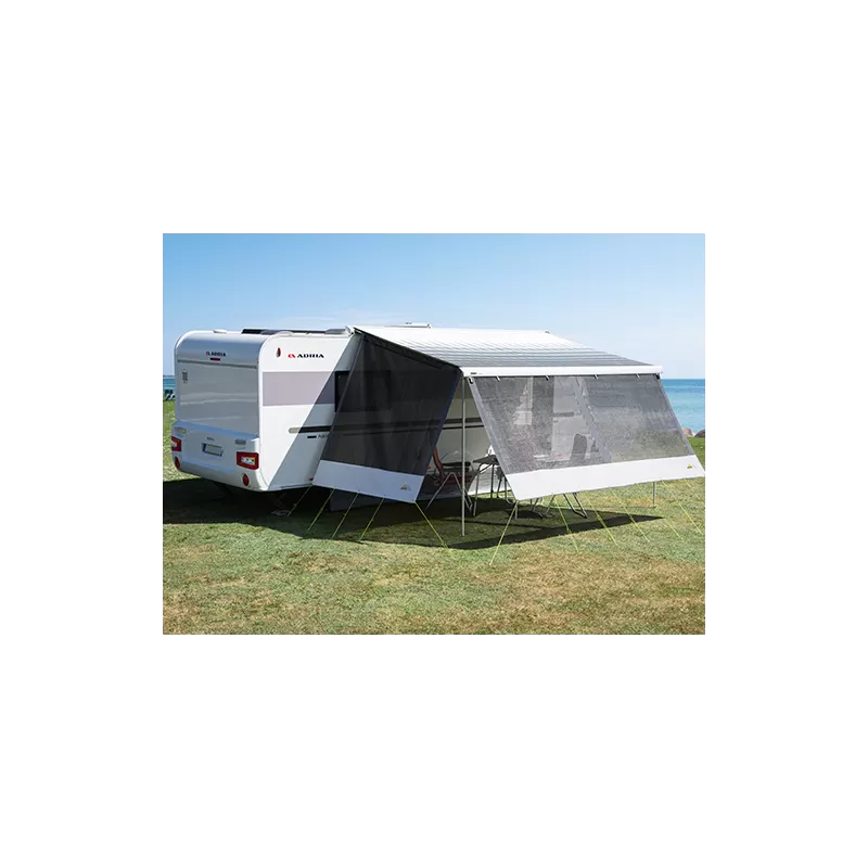 Pour un habillage complet et une protection optimale, nous vous conseillons d’ajouter les côtés Happy Sun, ainsi vous profiterez pleinement de vos vacances à l’abri du soleil et du vent.