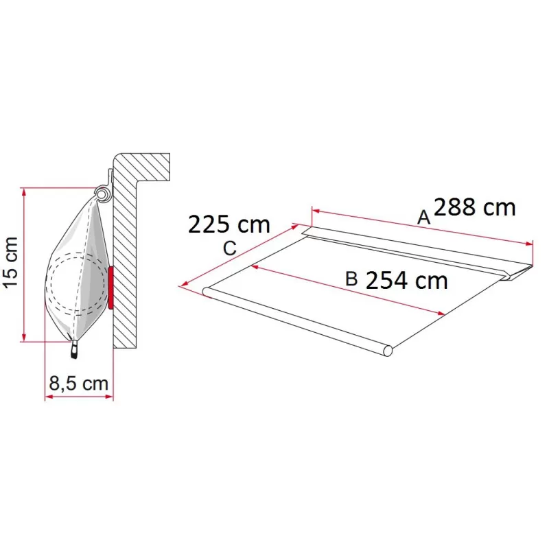 Spécifications techniques du store extérieur manuel pour caravane FIAMMA Caravanstore 280 XL :
