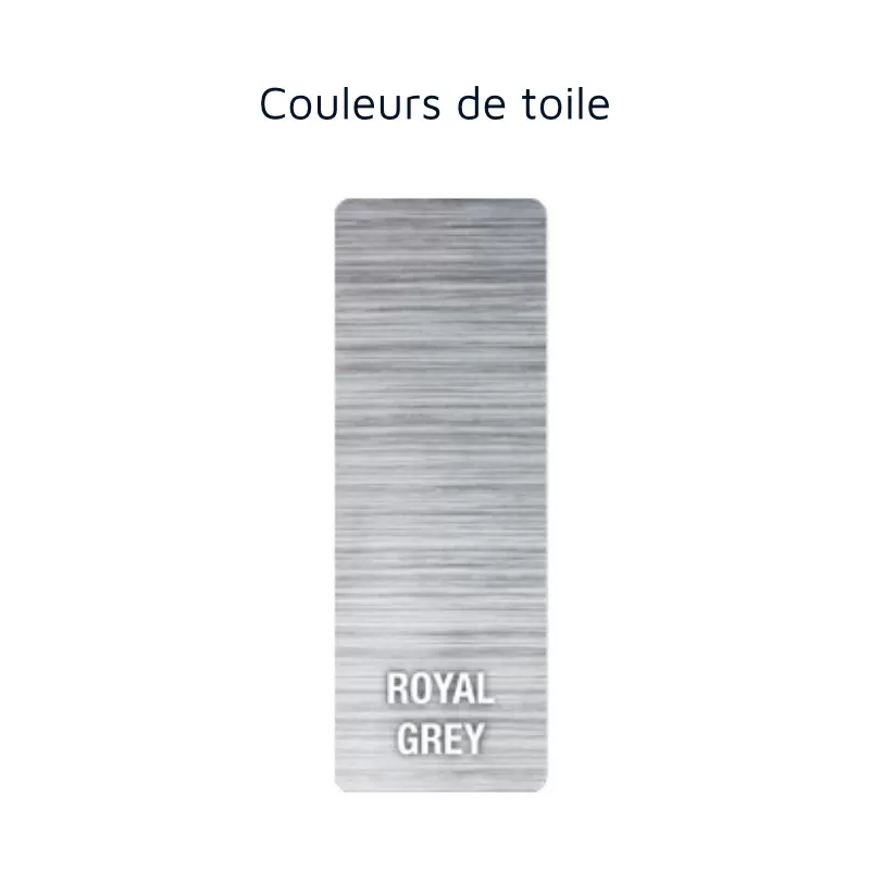 La toile du store est conçue en vinyle multicouche, imperméable & très résistant aux UV ! Proposé en couleur Royal Grey : grise avec de légers motifs très sobres et passe-partout.