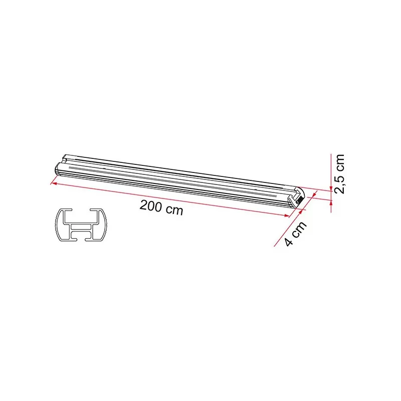 – Dimensions de la barre : L 200 x l 4 x H 2,5 cm