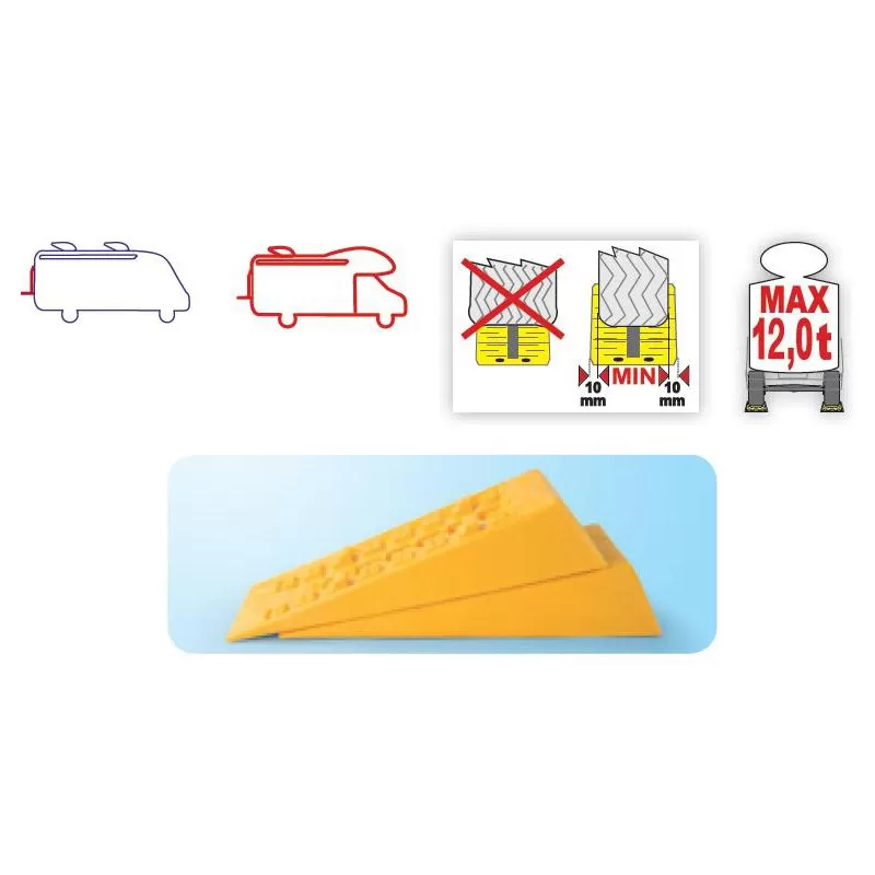 Pour la nuit ou pour la journée, être de niveau est bien plus à l’aise que d’être penché. Cet équipement robuste et mis en place en quelques secondes sous la roue d’une caravane, d’un camping-car ou d’un camion aménagé est parfaitement adéquat pour une utilisation sur un parking, du gravillon ou de l’herbe.