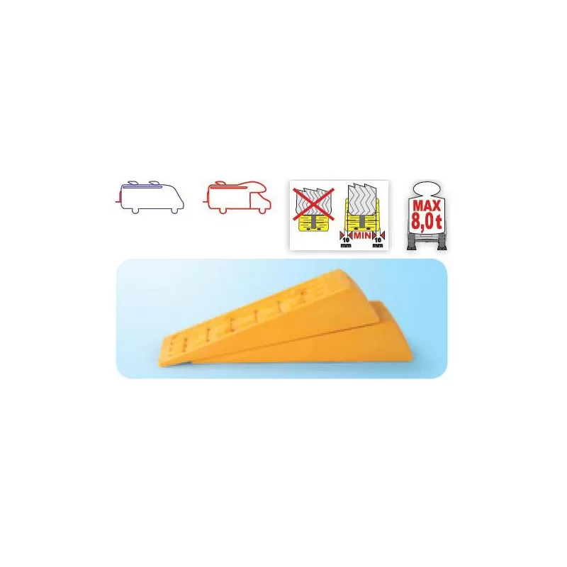 Accessoire camping-car très robuste, la paire de cale est conçue pour résister à un essieu de 8 tonnes !