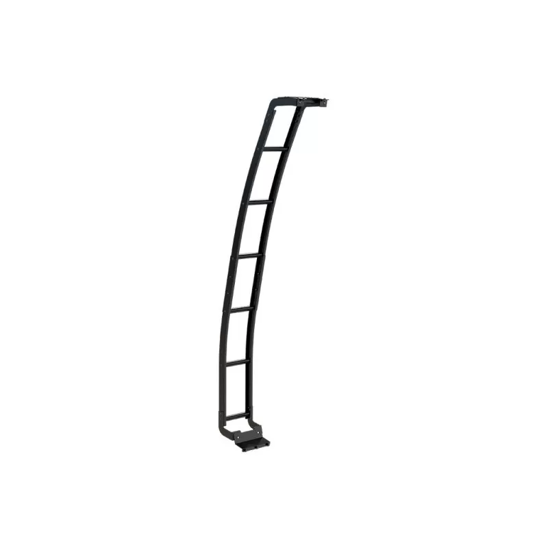 L’installation de cette échelle de galerie nécessite un perçage sur la garniture inférieure du véhicule. La partie supérieure se fixe sur le profilé latéral de la galerie de toit Slimpro.