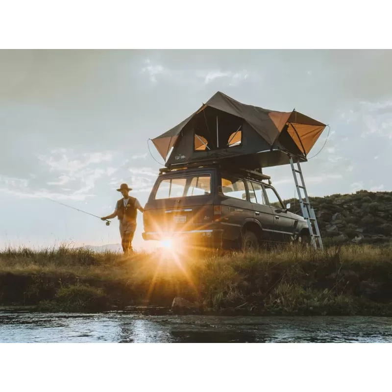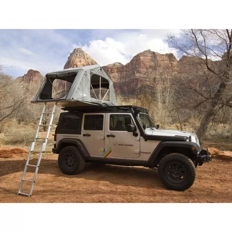 La tente de toit FRONT RUNNER est la plus légère du marché et possède une échelle permettant un accès facile mais aussi des poches de rangements suspendues. Son matelas haute densité de 6 cm possède une housse lavable résistant à l’humidité. Ses ouvertures possèdent des volets obturables.