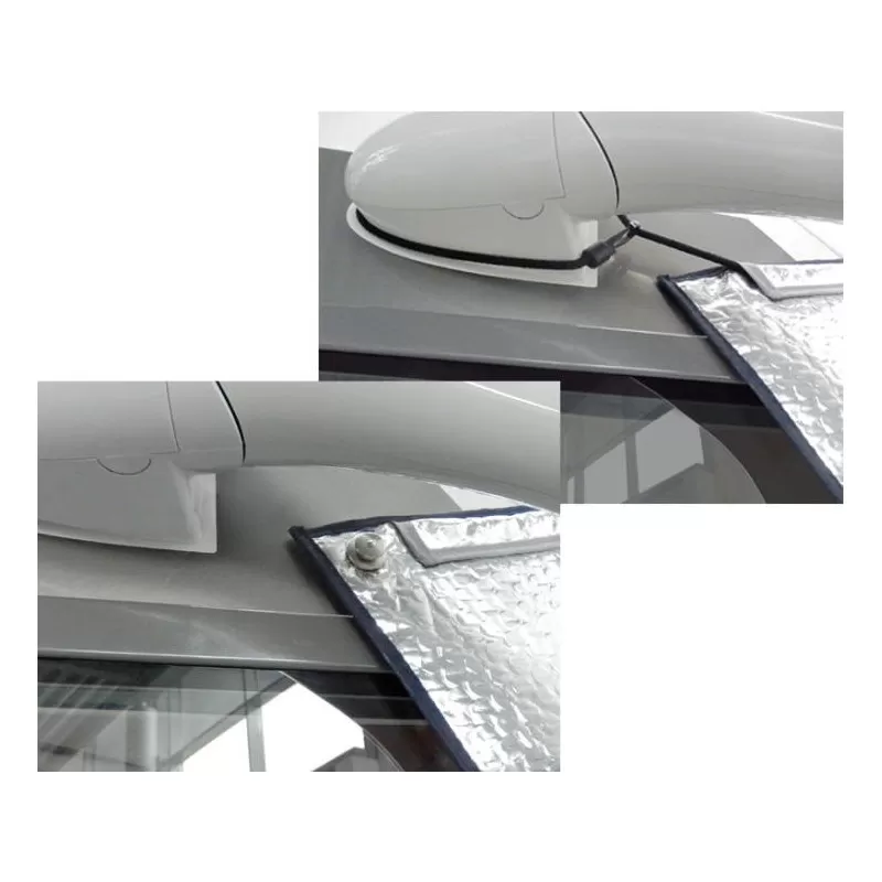 Rideau isolant à positionner à l’extérieur de votre véhicule sur le pare-brise pour une protection isotherme efficace de votre camping-car intégral.