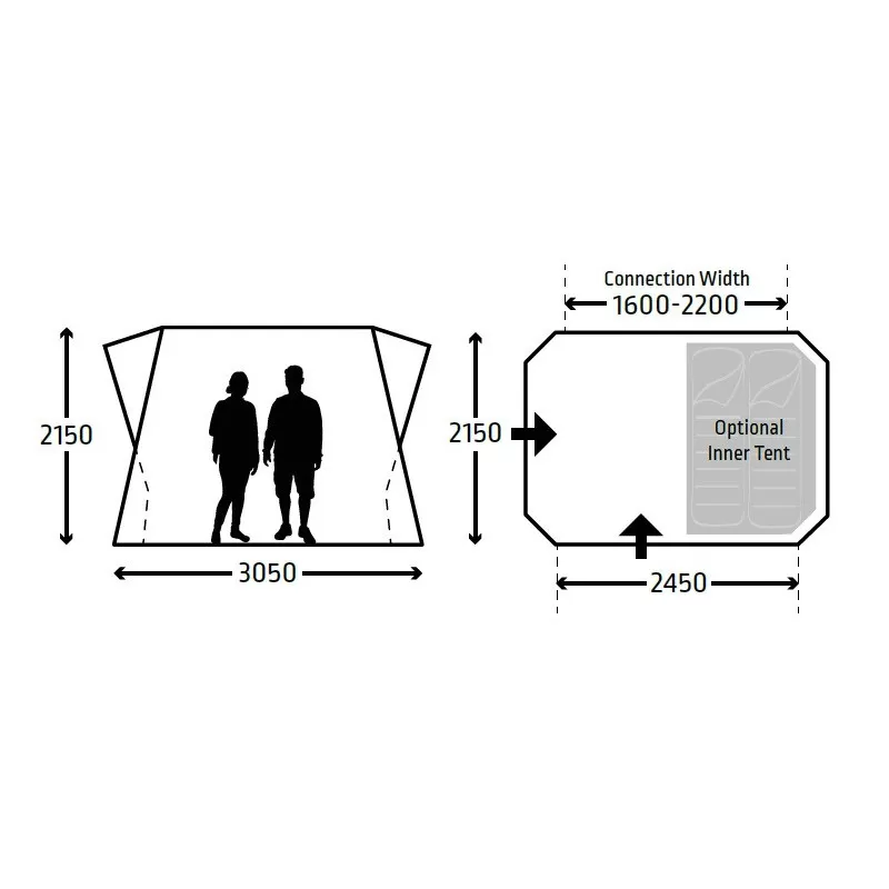 Rapidement mis en place, le sas arrière s’installe comme une toile de tente et avec sa structure pneumatique et sa pompe (gonfleur) livré c’est encore plus simple. Une fois posé, cet ingénieux équipement offre une surface au sol de 240 x 240 pour une hauteur de 225 cm parfait pour y cuisiner, y bouquiner ou même y dormir en ajoutant la chambre optionnelle qui se place à l’intérieur !