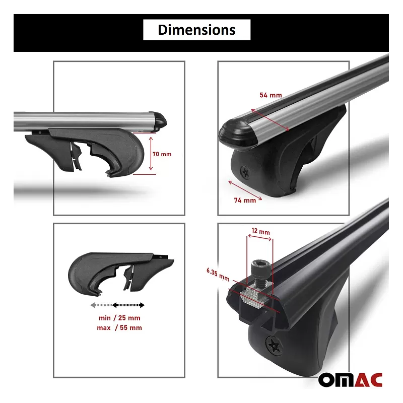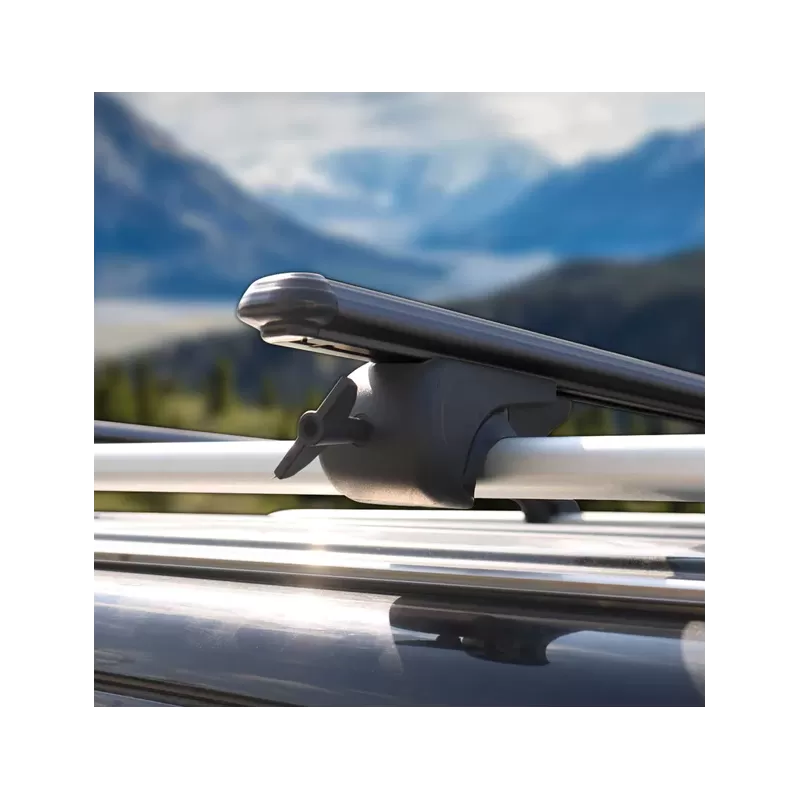 Les barres de toit OMAC fabriqué en aluminium et ABS noir spécialement prévus pour résister à la corrosion, aux rayures pour une meilleure durabilité. Leurs formes aérodynamiques offrent une réduction du bruit et donc une réduction de consommation de carburant. Les barres de toit se fixent sur les rails de toit OMAC et ne nécessitent aucun perçage.