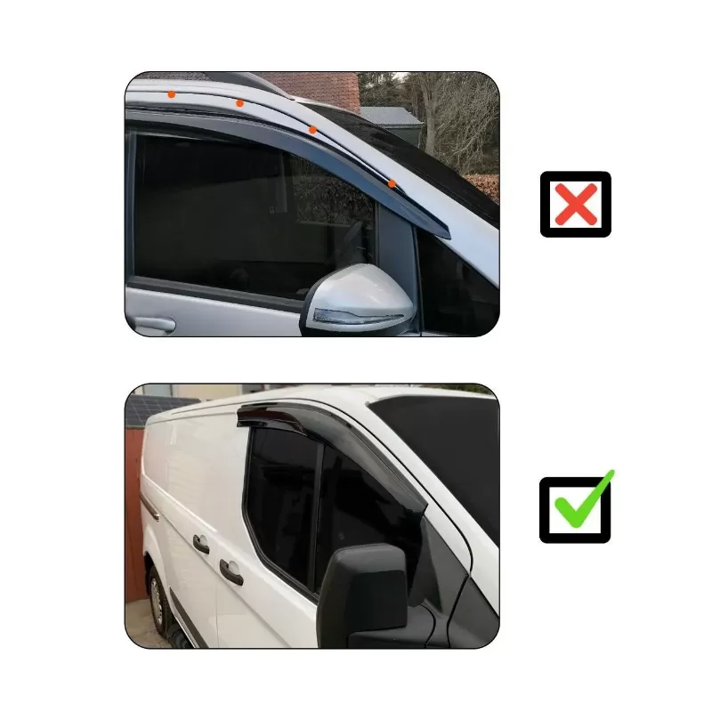 Les déflecteurs s’installent rapidement grâce à ses bandes adhésives au-dessus des vitrages de portières avants de votre véhicule.