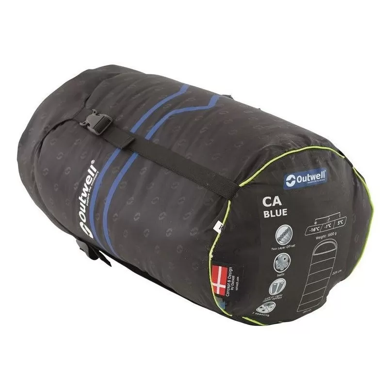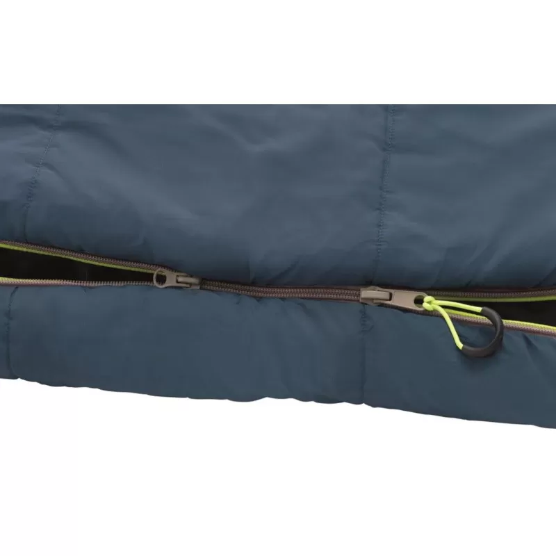 Trop souvent les fabricants de duvet rognent l’espace du duvet pour un gain de place et de poids, ici le fabriquant Danois OUTWELL fait le pari inverse, un duvet en forme d’œuf pour un compromit parfait entre technicité thermique et confort.