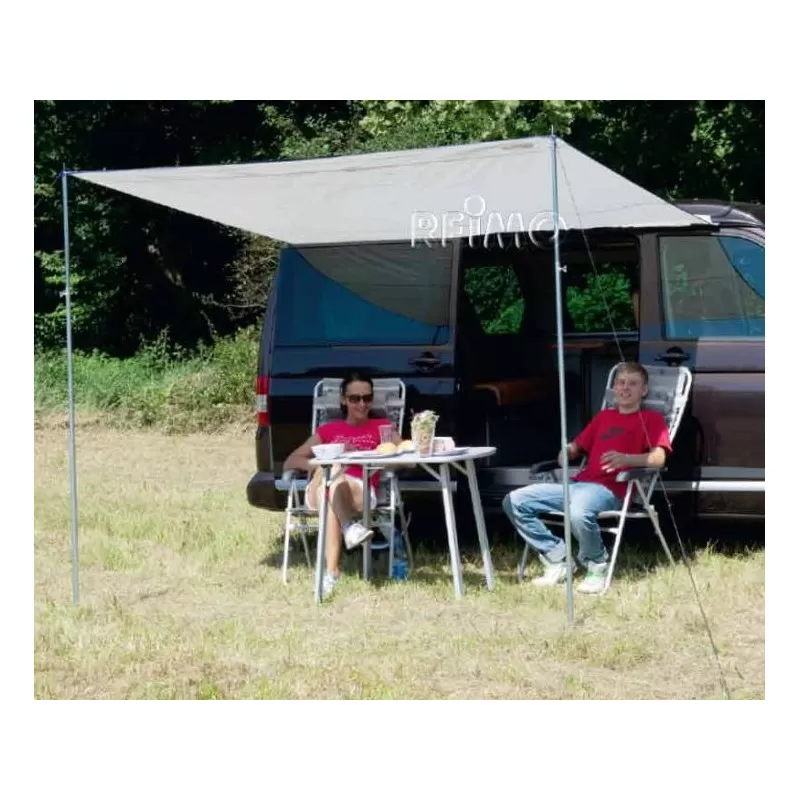 Le Charly de REIMO est une toile d’ombrage, un auvent léger pour les fourgons et vans aménagés en camping-car ou caravane. Facile à installer, il fait 255 x 240 cm et fait office de solette un fois en place.
