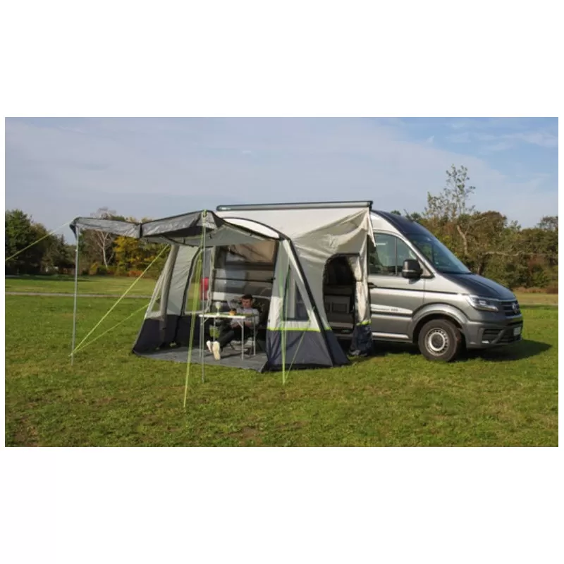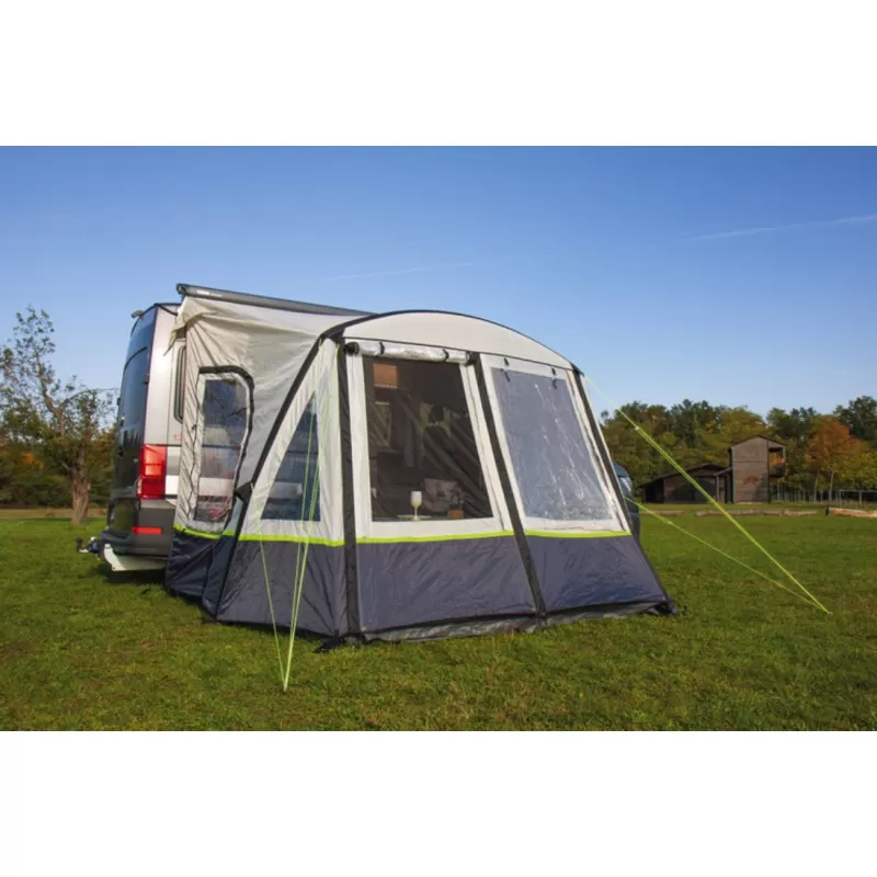 Parfait pour ceux qui veulent augmenter leur espace de vie facilement, cet auvent pour camping-car est fait pour ceux qui bougent régulièrement pendant la saison. En effet, avec sa structure pneumatique gonflable il se met en place et s’enlève rapidement. Avec ses dimensions de 350 x 250 cm, il offre une très bonne surface au sol.