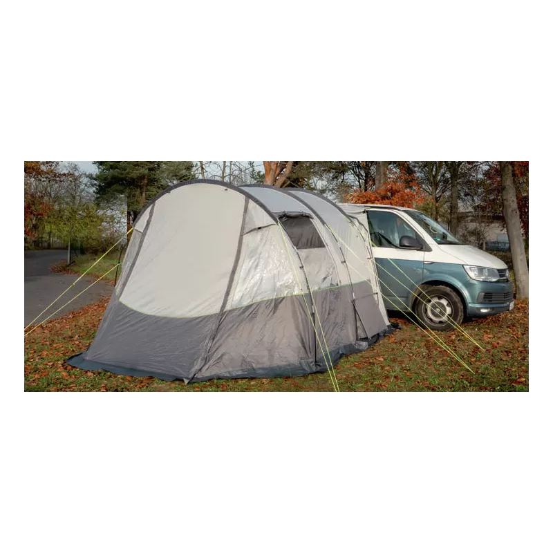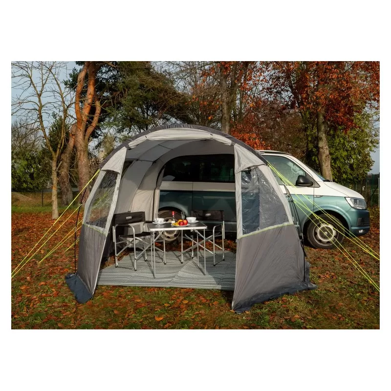 Cet auvent latéral pour van aménagé offre un bel espace de vie étanche lors de vos séjours en vacances avec votre véhicule de loisirs. Doté de grandes ouvertures et de moustiquaire pour profiter de la luminosité extérieure, vous pouvez aussi utiliser les rideaux pour plus d’intimités en soirée.