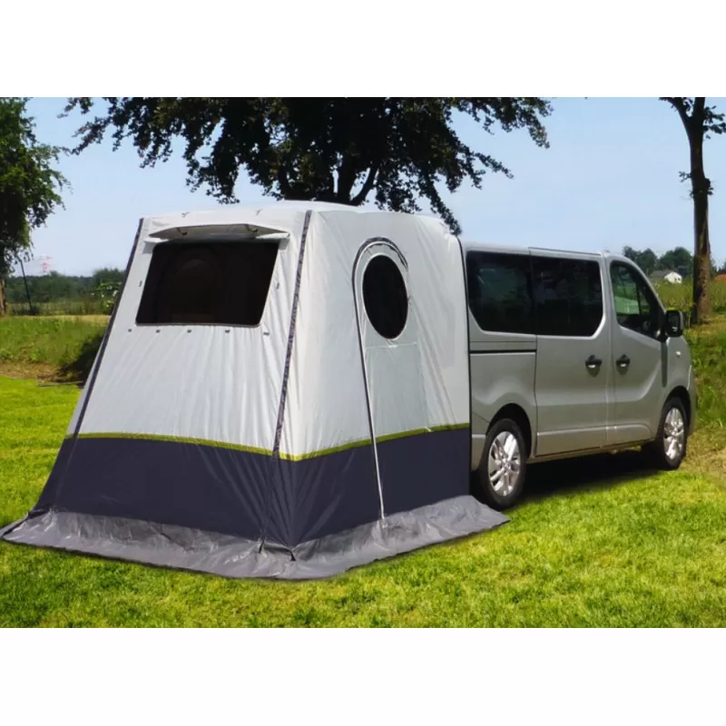 Le Trapez Trafic offre une solution pour agrandir considérablement l’espace de vie en quelques minutes seulement. Très pratique les jours de soleil, mais aussi les jours de pluie cet auvent pour hayon arrière permet d’y loger une petite cuisine, une douche… Lumineux, le petit plus de cet accessoire est la la baie vitrée eu dessus de celle du hayon : luminosité garantie !