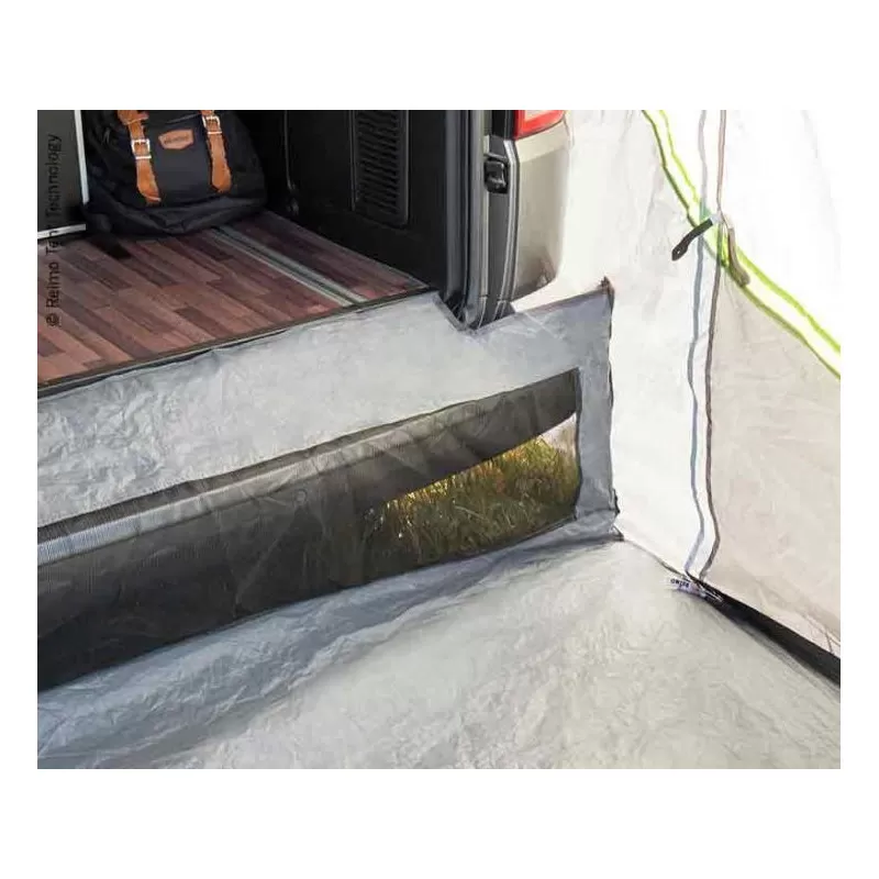 Parfait pour augmenter l’espace de vie lors de vos weekends et vacances découvertes en fourgon aménagé, cet accessoire vient se fixer sur le hayon des VW T5 et T6 pour faire un sas transformant l’arrière du van en une véritable pièce de vie supplémentaire ! Facile à mettre en place et à enlever, la tente de hayon Uprgade Premium de REIMO offre des options supplémentaires que les autres auvent n’offrent pas. Notamment un tapis de sol inclus avec trois portes à moustiquaire pour dormir à l’abris des nuisibles !