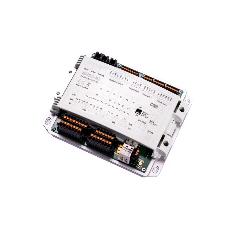 Le SCP100 est livré avec un panneau de contrôle & une centrale de distribution électrique. Son rôle premier est donc d’assurer la distribution de l’électricité dans l’aménagement & donc d’alimenter les consommateurs électriques : Réfrigérateur à compression, pompe à eau, prise USB etc…
