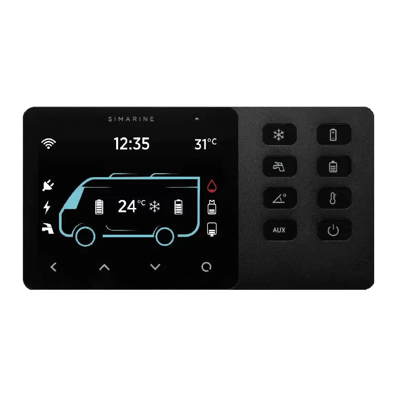 Le Simarine SCP100 pour van aménagé & camping-car est un panneau de contrôle WIFI haut de gamme permettant de distribuer le courant vers les équipements, visualiser l’état des réservoirs, contrôler l’état de charge des batteries ! Son large écran tactile vous permettra d’obtenir un affichage claire & précis !