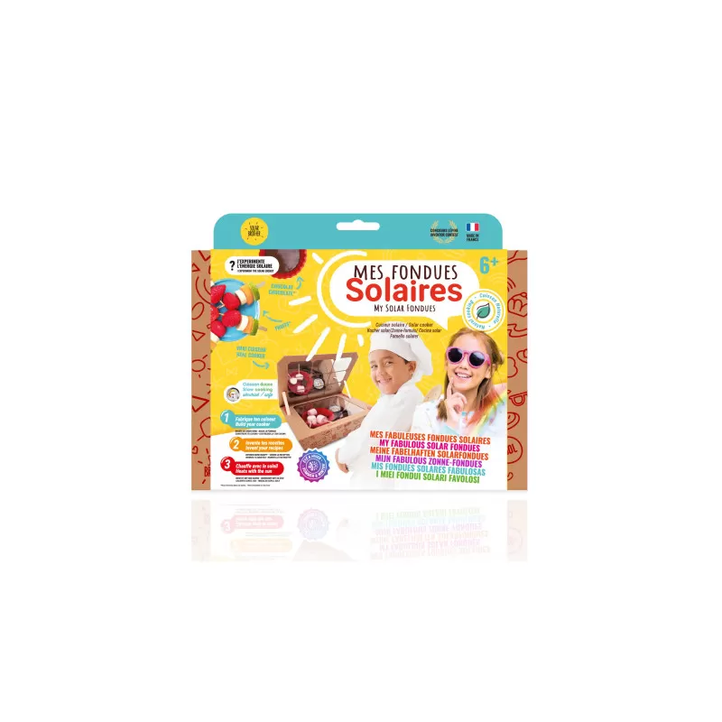 Complet, il est fourni avec les miroirs, un thermomètre pour vérifier la température de cuisson, 1 ramequin et 1 moule en silicone pour vos sauces ou tartes, 2 baguettes en bois pour la manipulation ainsi qu’une notice explicative dédié aux petits comme aux grands.