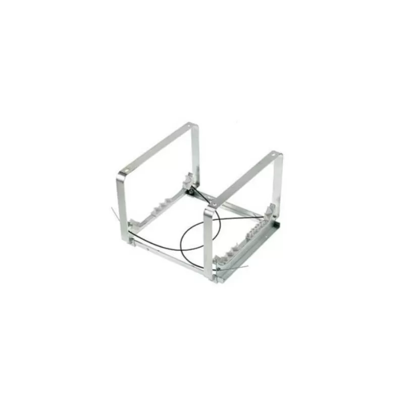 Très pratique donc, cet équipement TELAIR permet de fixer par suspension en toute sécurité le groupe électrogène GPL pour la charge des batteries EcoEnergy sous le châssis. Une fois en place elle permet d’accueillir l’unité de puissance fermement maintenue grâce à des cerclages métalliques résistants.