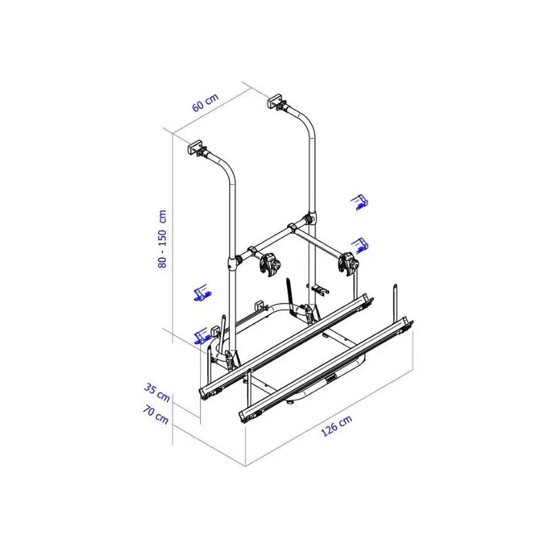 – Entraxe de fixation : 60 cm en largeur, 80 à 150 cm en hauteur