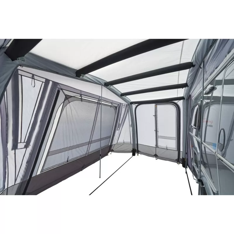 Les caravanes surbaissées ont aussi droit à un auvent gonflable adapté à leur petit gabarit : cet auvent de marque TRIGANO est pratique grâce à son armature gonflable qui vient se monter facilement et rapidement sans effort. Convient parfaitement pour les saisons printanières, estivales et automnales : il résiste aux intempéries. L’auvent pour caravane surbaissée dispose de 2 tubes à air à gonfler grâce aux valves extérieures. Dispose également de moustiquaires au niveau des portes latérales et d’aérations en façade.